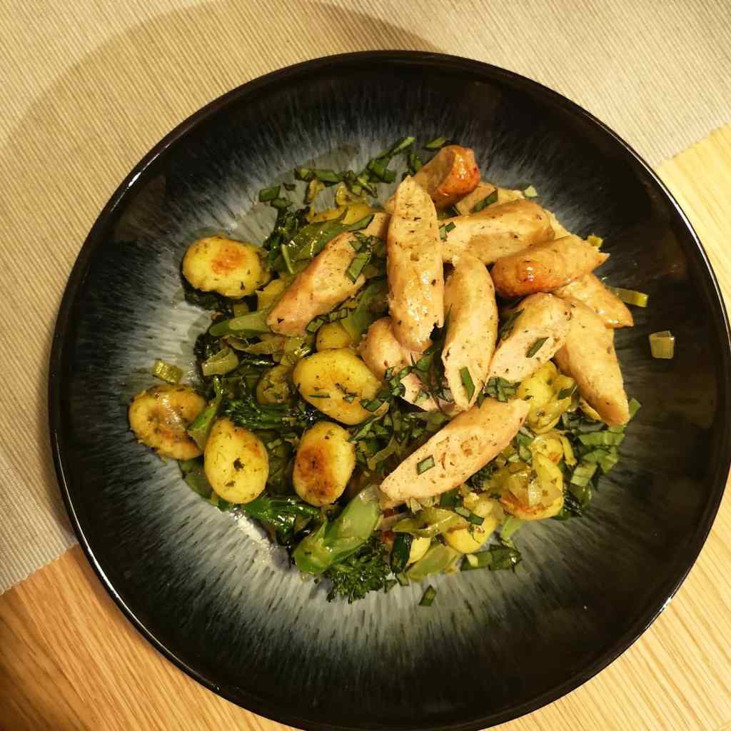 - Once the gnocchi is crisp and golden, add to the pan with your veg and combine.